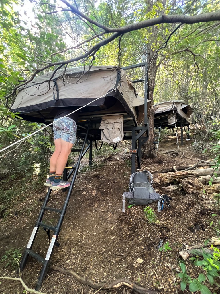 - Camp Francis kind of sucks – it’s on a steep hill so depending where your camping spot is, you’ll need to hike a bit to find your spot. The one bathroom area is at the bottom of the camp…😑 It was not fun hiking and climbing up a ladder to the rooftop tent after an 8-hr day. (Refer to photo in accordion section 3)